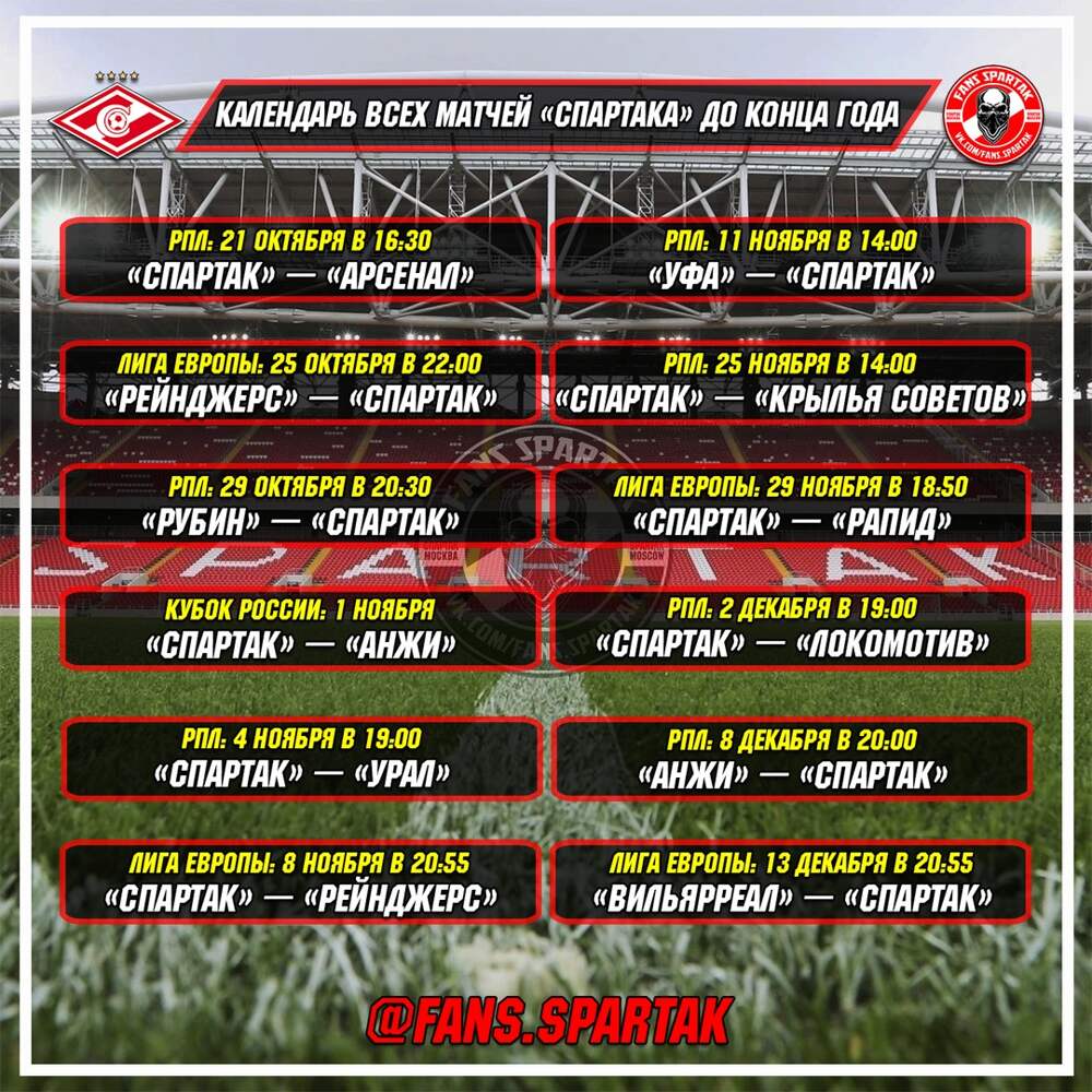 Календарь СПАРТАКА до конца года